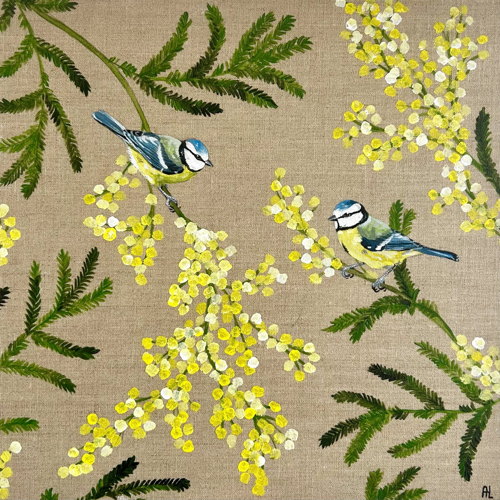 Mésanges bleues et mimosa